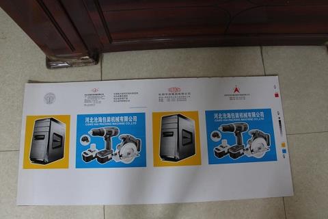 The operation procedure is manually folded by the workers have finished the whole piece of cardboard into the glue coating department, by the glue coating department automatic glue coating in the cardboard adhesive parts, through the roller to the shaping department one by one plastic shaping up to a certain number of automatic transmission pressure, blow-dry and finally completed.